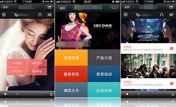 2、 微網(wǎng)站的建立,企業(yè)就不需要頻繁地在微信上發(fā)布產(chǎn)品信息,只需要通過網(wǎng)站對產(chǎn)品進(jìn)行更新就能讓用戶快速地了解到更全面的最新消息,企業(yè)展示產(chǎn)品的方式也更加自由和開放。同時,微網(wǎng)站可建立各種交易模式,通過微網(wǎng)站讓交易途徑變得廣泛,解決客戶擔(dān)心的資金安全問題。