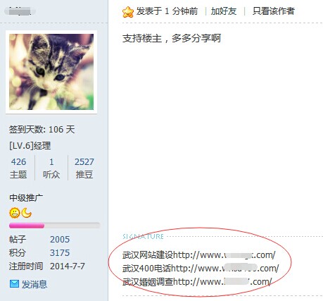 再來說說論壇外鏈,論壇的互動(dòng)性極強(qiáng),通常是以發(fā)帖回帖的形式吸引用戶的參與,但是這種方式能給網(wǎng)站帶來權(quán)重或流量嗎?答案是肯定的,奇億小編舉個(gè)自身在tui18論壇發(fā)帖的例子,相信大家就明白了。論壇帖子,通常會(huì)收到“支持樓主”、“感謝分享”等等這一類的回復(fù),這時(shí)別人有沒有用心看你的文章似乎顯得不太重要,他們這樣做的目的主要還是外鏈。除了本身發(fā)帖可以添加外鏈,論壇簽名一般可以帶上鏈接,只要你參與回帖,又可獲得一個(gè)外鏈的機(jī)會(huì)。效果較好的外鏈論壇有:tui18,阿里,seo論壇,新浪等。